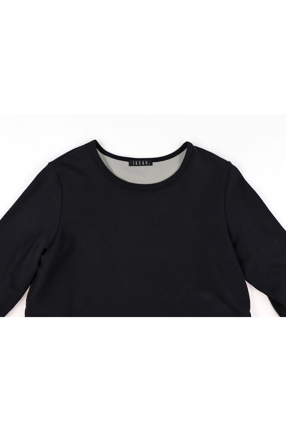 透けを気にせず着られて、リラックス感のあるシルエットと程よく効かせたフェミニンなデザインポイント。リラクシーなのにおしゃれ心をくすぐる異素材の組み合わせで、IKUKOらしい大人の普段着を演出します。