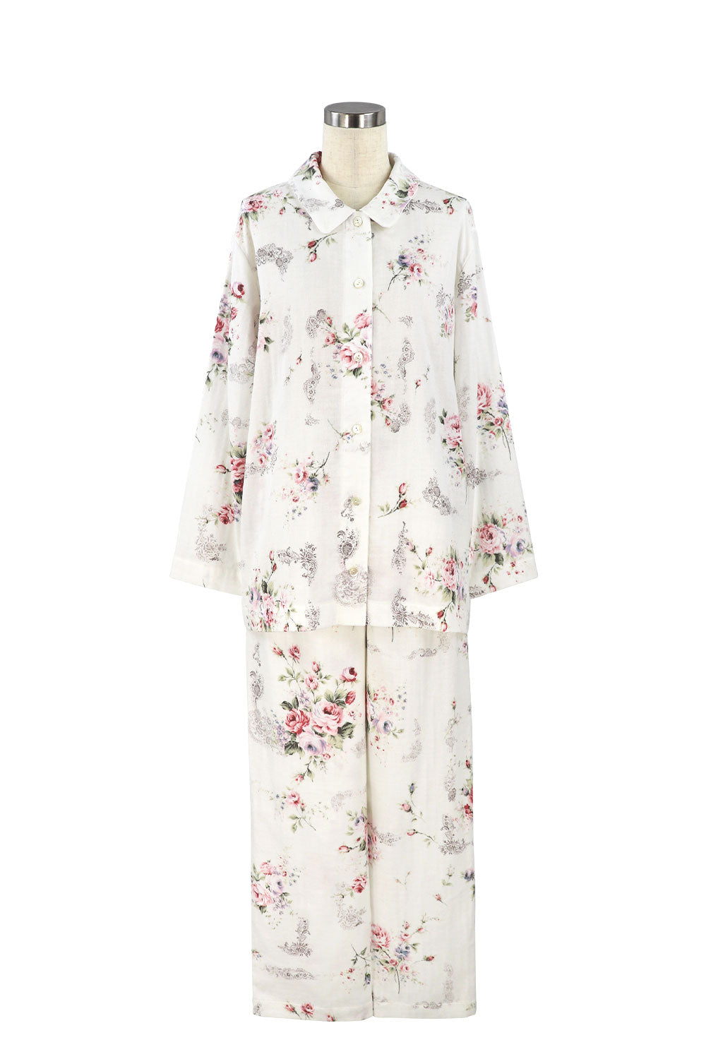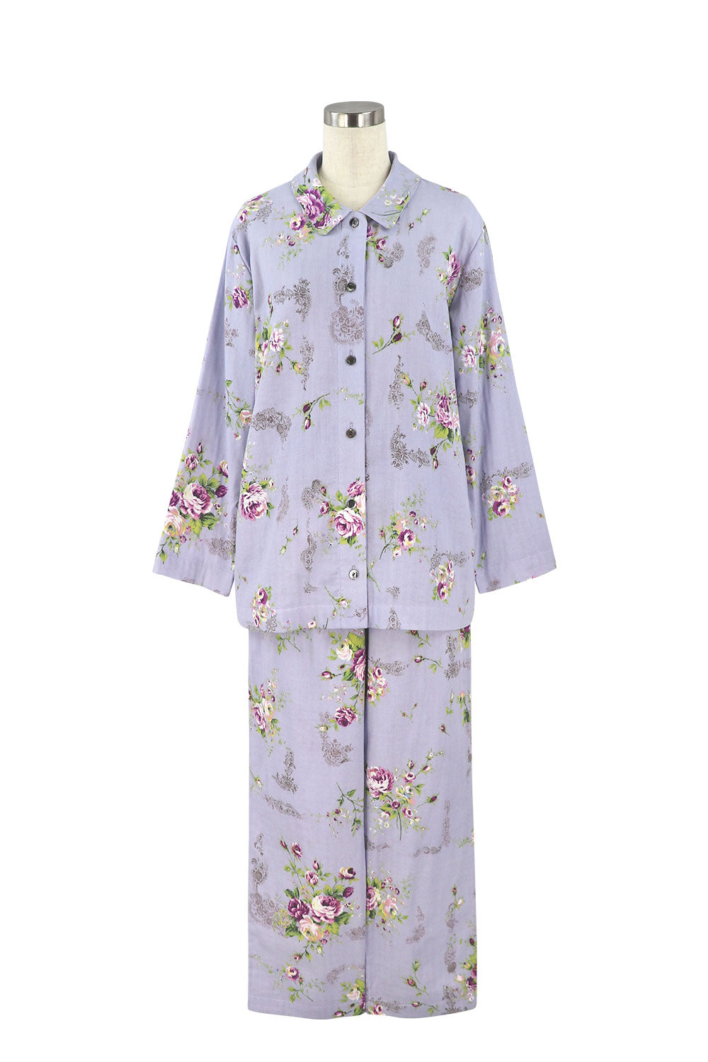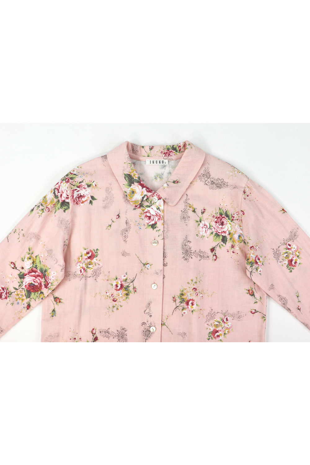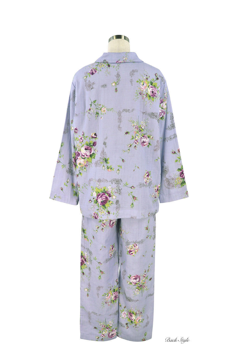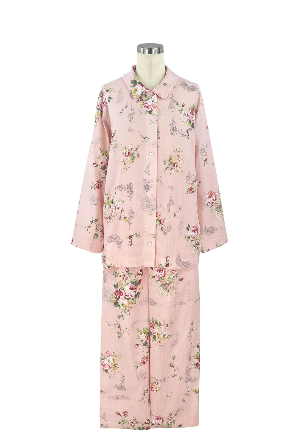 ダブルガーゼ花柄プリント 襟付き長袖パジャマ