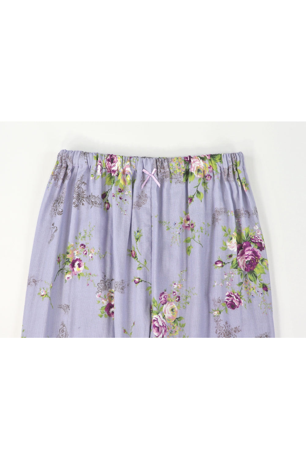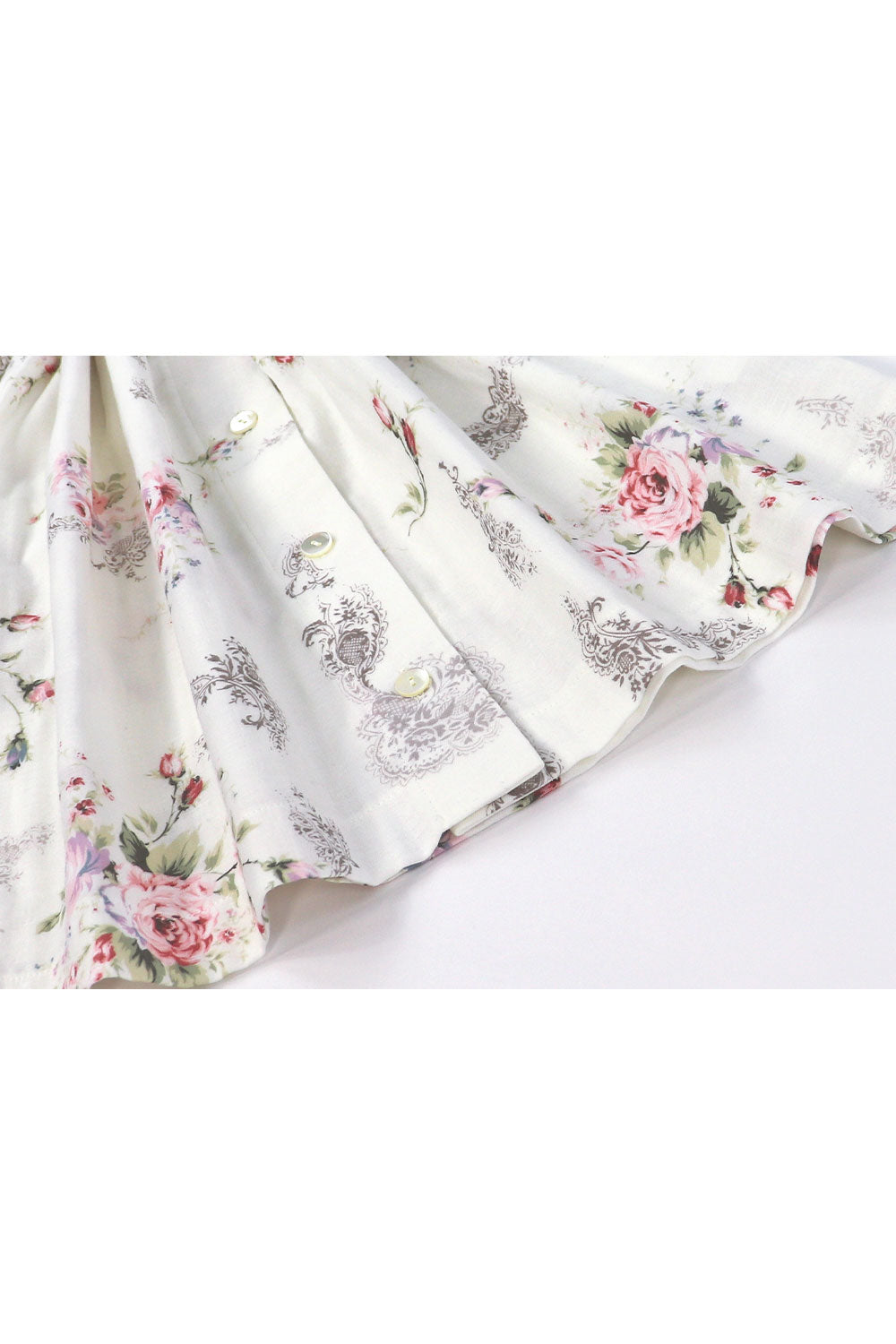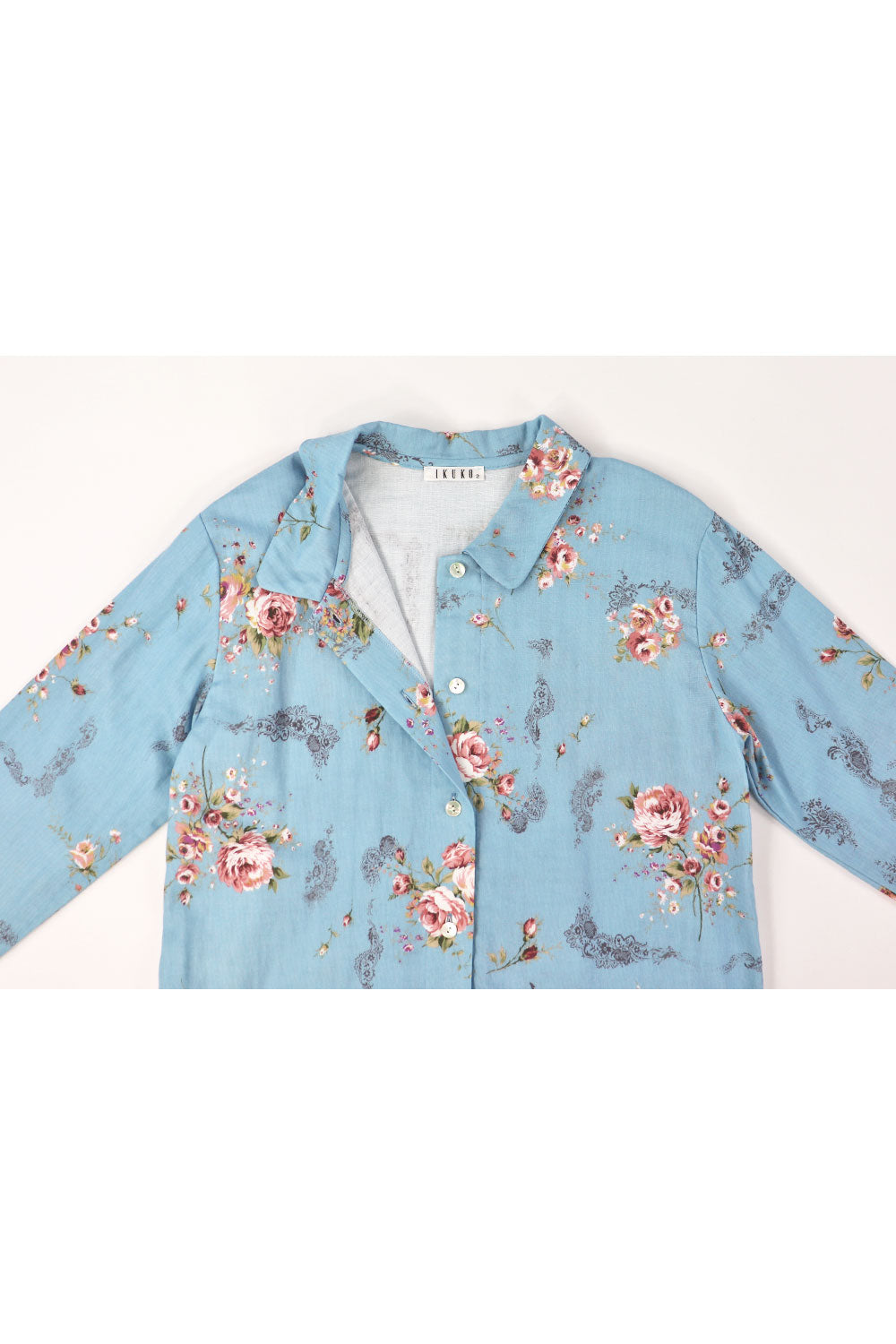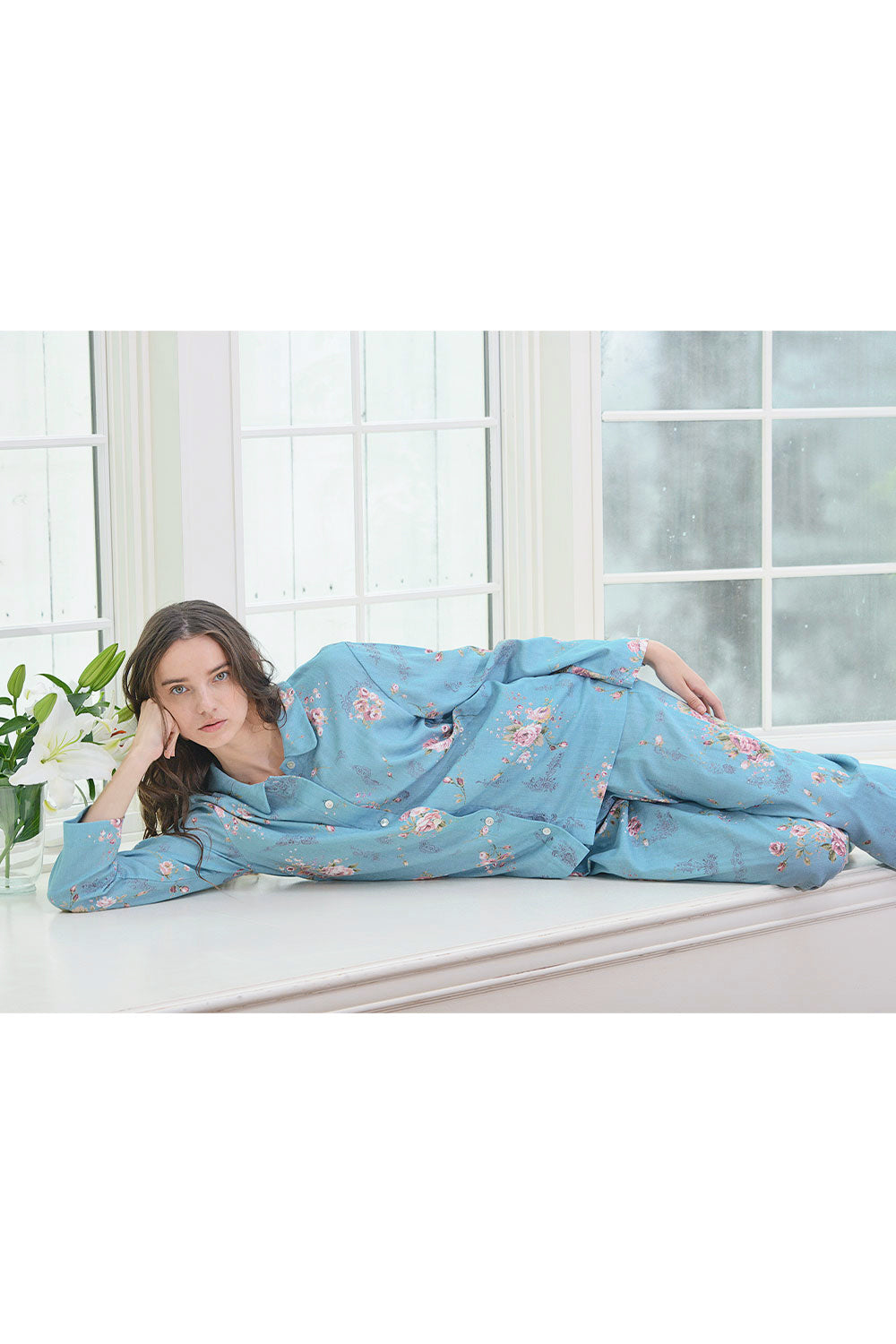 ダブルガーゼ花柄プリント 襟付き長袖パジャマ