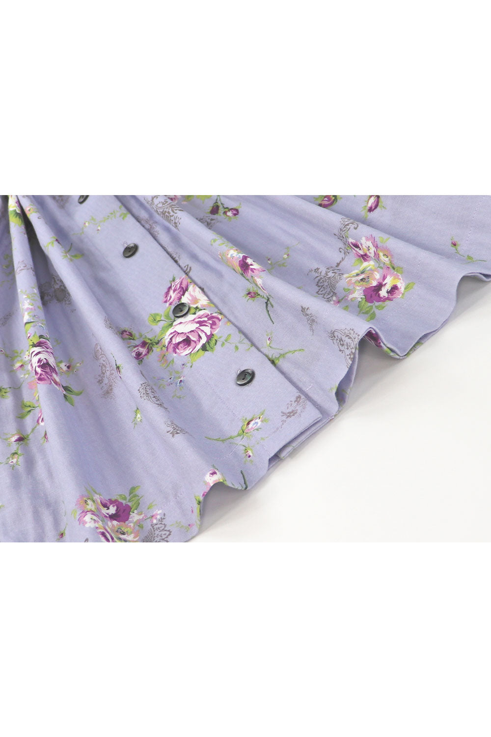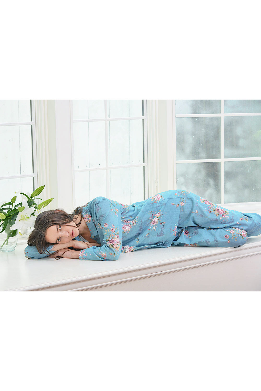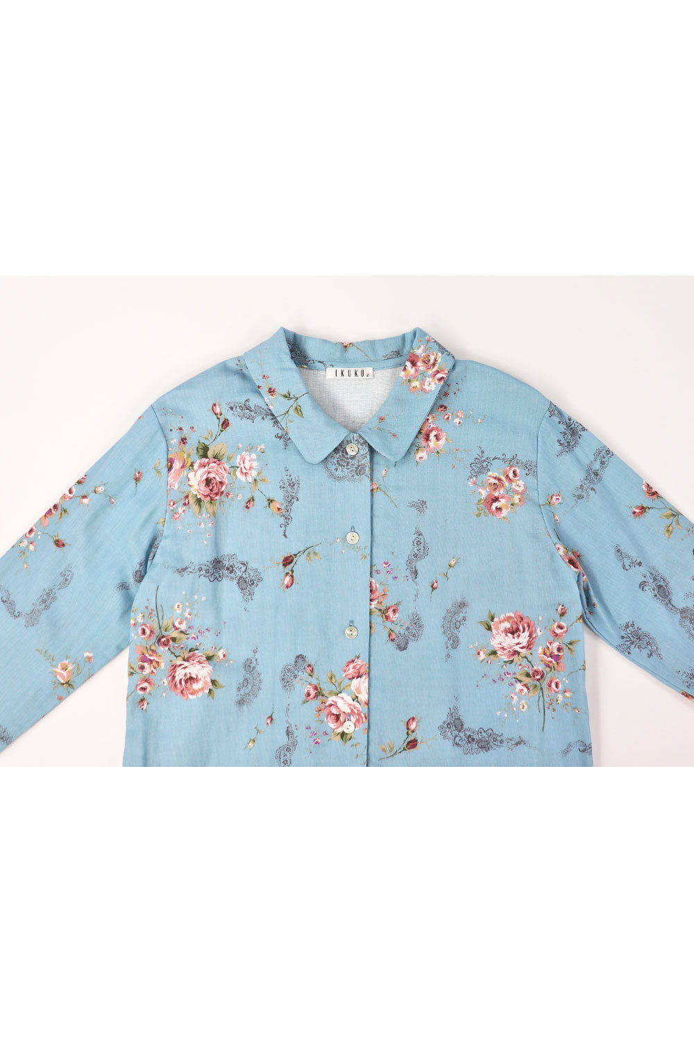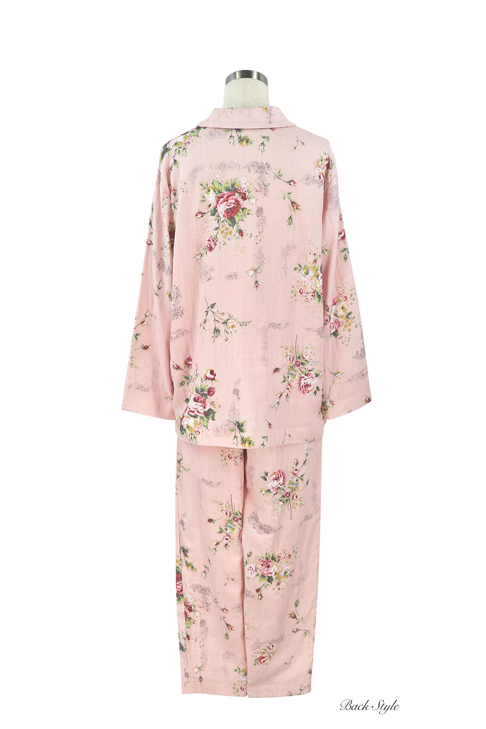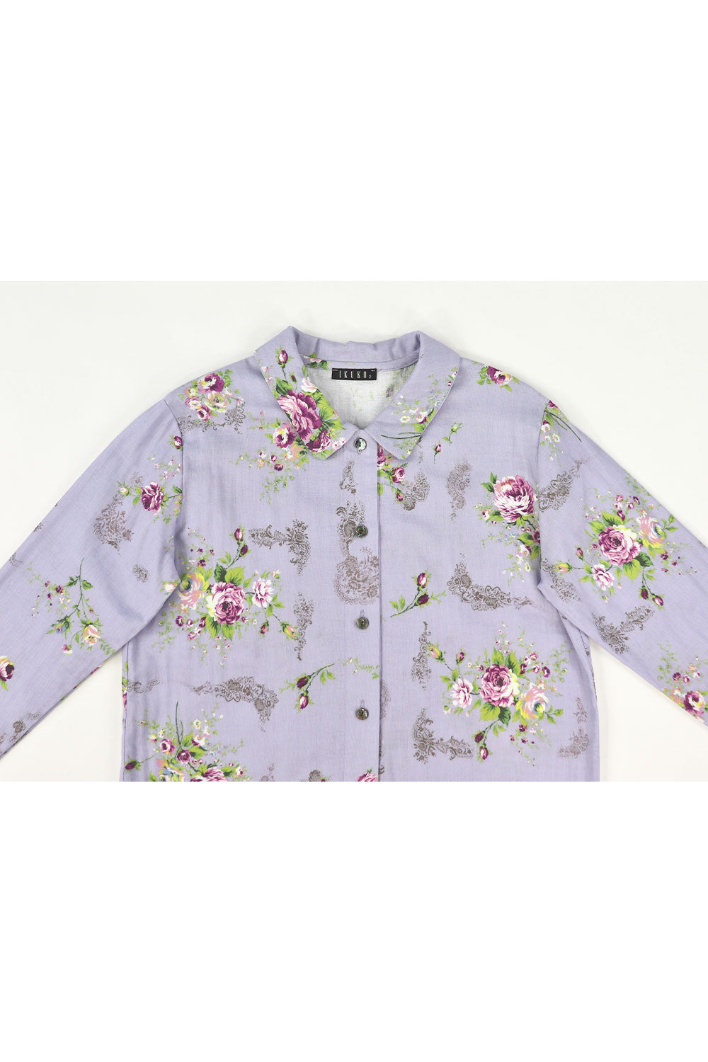 ダブルガーゼ花柄プリント 襟付き長袖パジャマ