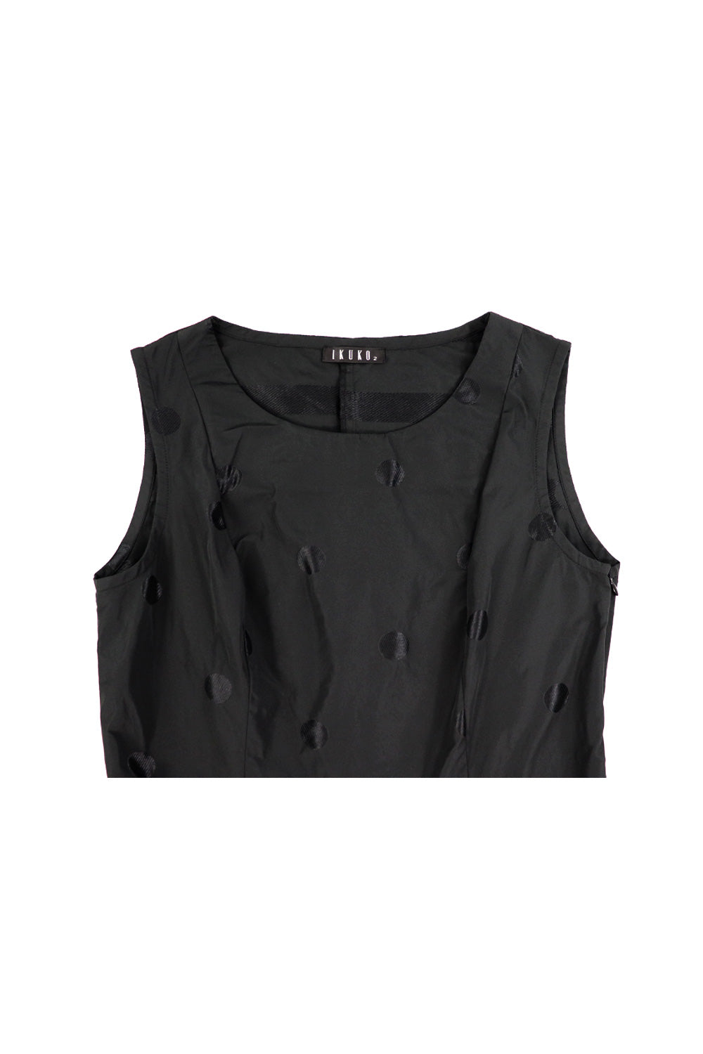 シーズンムードを引き立ててくれるモダンなドット柄。ふんわりとしたフォルムも表面光沢で引き締まり、ドレッシーになり過ぎない大人っぽさが魅力的。