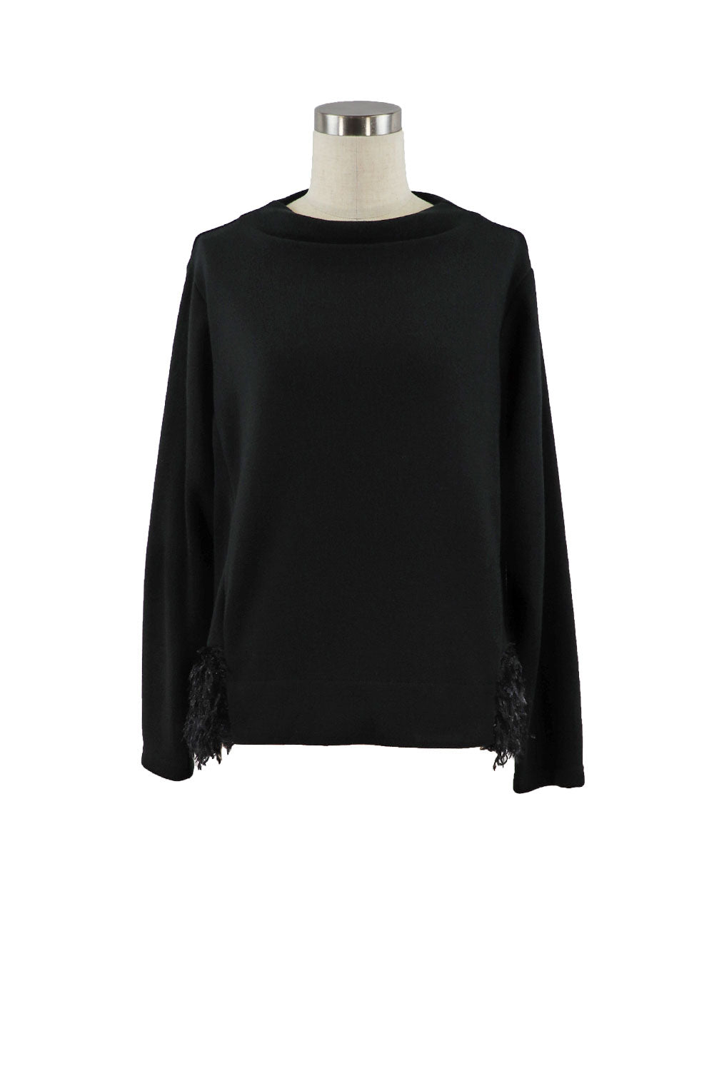 秋冬に嬉しい首元暖かなボトルネックのトップスは、裾ヘムに幅を持たせて大人の余裕を魅せつつ、後ろにふんわりとしたフェザーニットを組み合わせたデザインニット。肩線を少し下げて適度にリラクシーなシルエット仕上げで、女性らしい柔らかな雰囲気が好印象。ベーシックにみえつつ華やかさがあり、ゆったりとした着心地が魅力です。フェミニンにもモードにもカジュアルにも、いかようにも着回せる万能型デザインで、秋冬のスタイリング幅をぐっと広げてくれます。