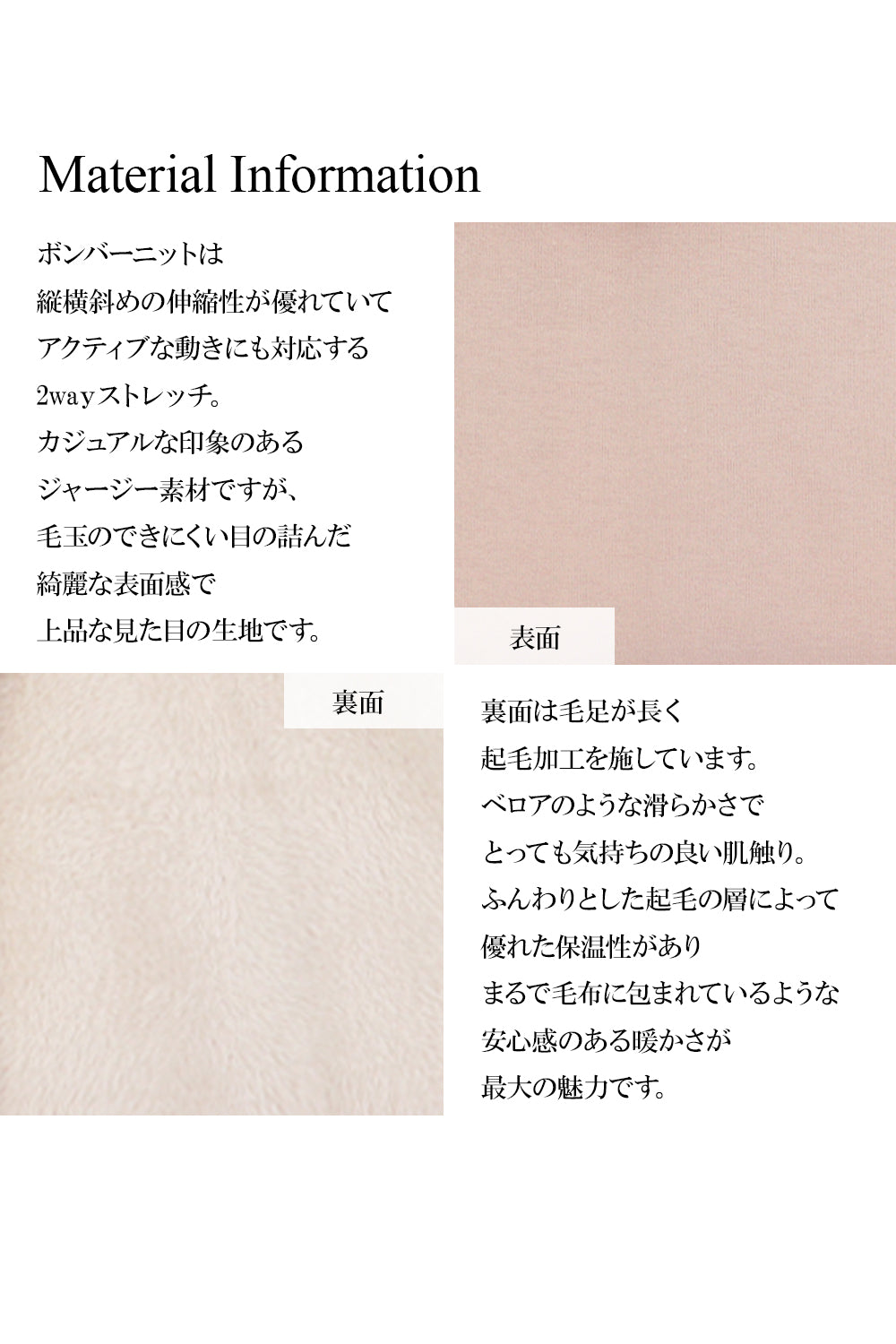 包まれる安心感とベロアのような肌触り。「シーズン最高の暖かさ」と言われるほど抜群の保温性で、毎年大人気のボンバーニットシリーズ。カジュアルなジャージー素材にIKUKOらしいエッセンスを添えて、大人の上品なリラックスタイムを演出します。